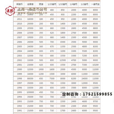 以上就是熊猫金银纪念币最新价格及收藏价值赏析的相关资讯,想要定制加工金银章/金银条/金银盘,制作纪念章,定制大铜章,定做纪念章,纯银纪念章,定制纪念章,银质纪念章,就找上海一币造币公司接受各大企业/政府/金融/电力/教育等行业及企事业单位重大活动纪念定制纪念章,大型项目成立纪念定制金银章,周年庆定制金银纪念币。